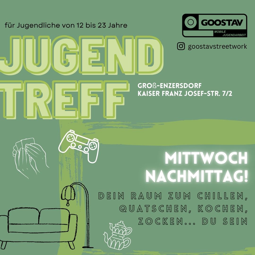 Jeden Mittwoch öffnen wir unseren Jugendtreff in der Kaiser Franz Josef-Straße 7/2 (im selben Haus wie das Lernquadrat)